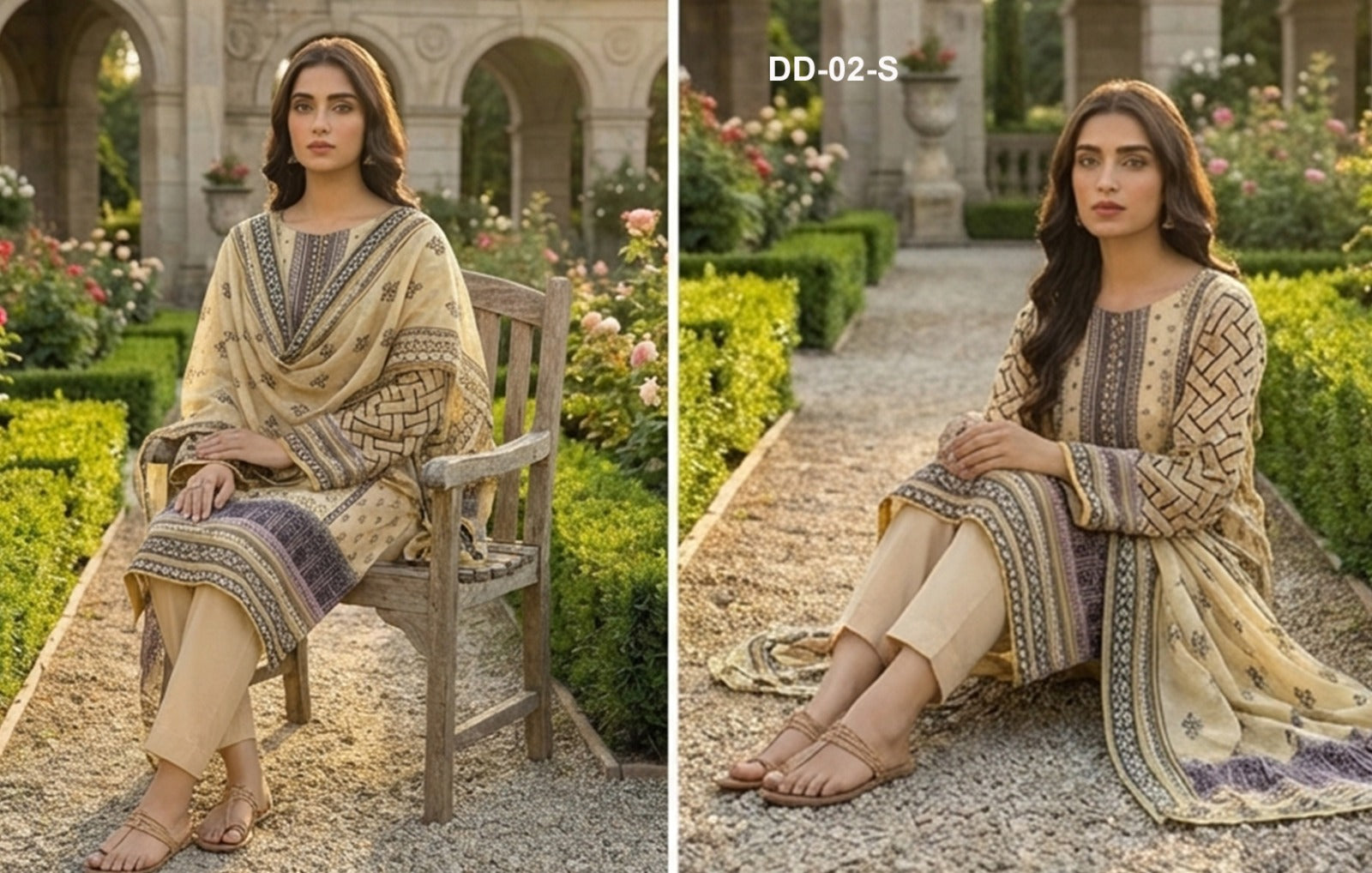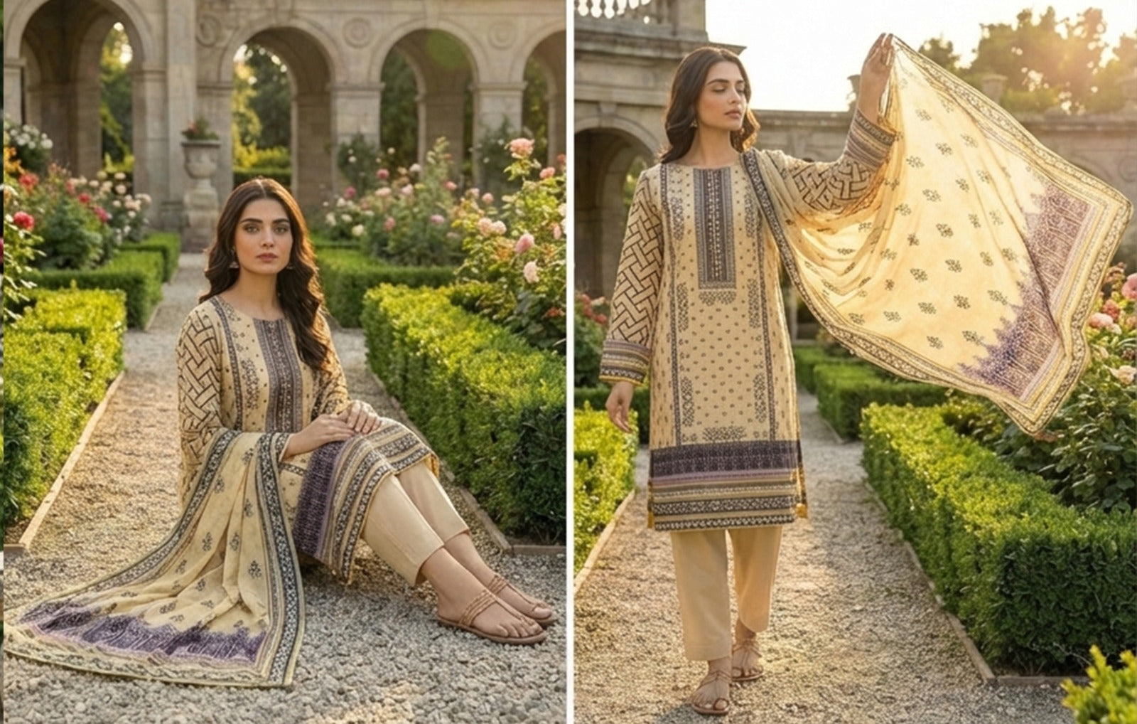 Upgrade your everyday wardrobe with Daily Vibes, a premium luxury printed bana dora lawn unstitched 3-piece suit designed for effortless elegance and comfort. Crafted from high-quality bana dora lawn fabric, perfect daily wear.