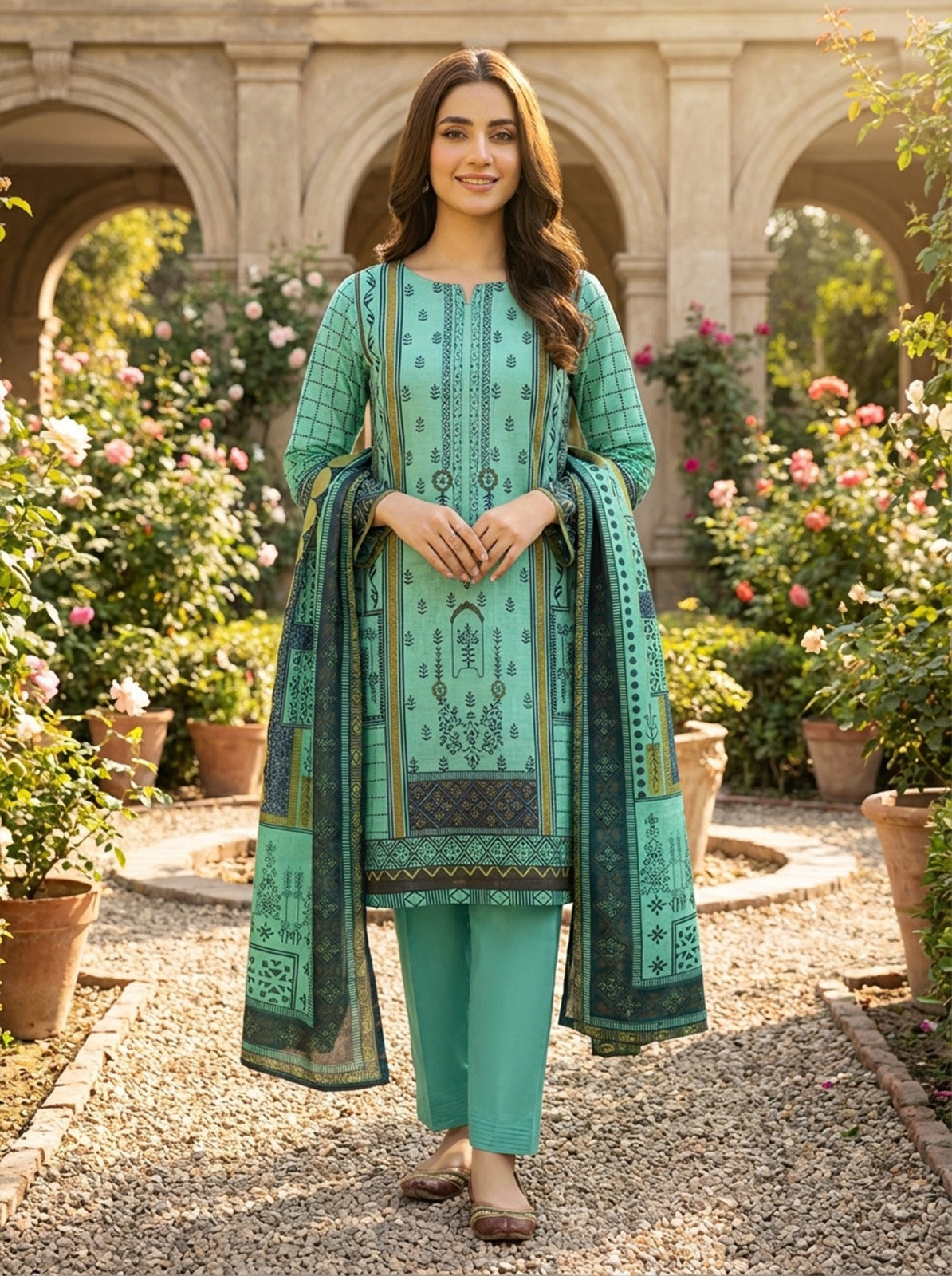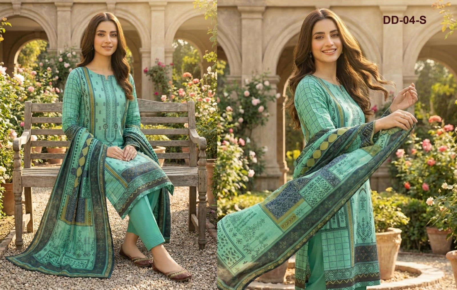 Upgrade your everyday wardrobe with Daily Vibes, a premium luxury printed bana dora lawn unstitched 3-piece suit designed for effortless elegance and comfort. Crafted from high-quality bana dora lawn fabric, perfect daily wear.
