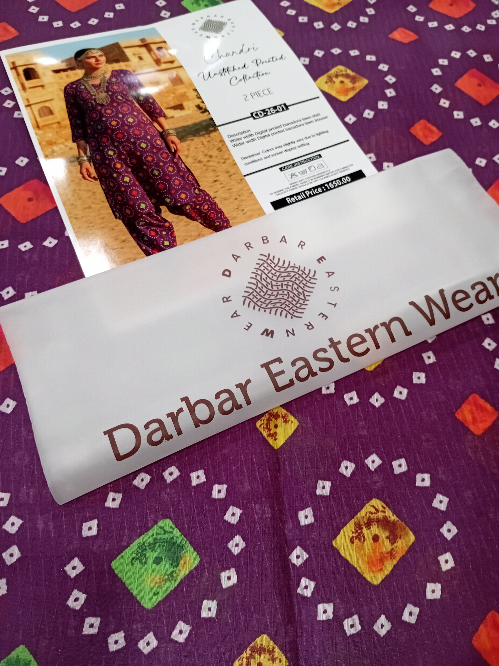 Chundri digital printed banadora lawn unstitched 2-piece purple